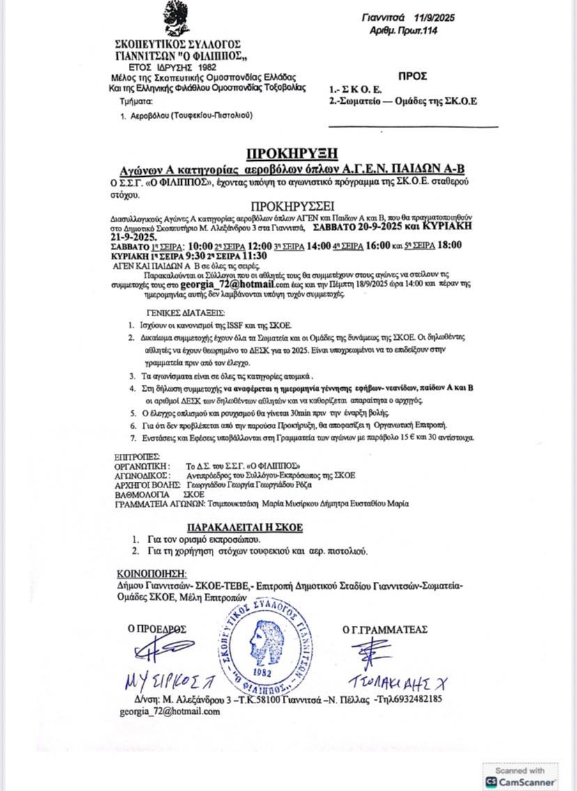 Ο Φίλιππος Γιαννιτσών διοργανωνει αγώνα Α κατηγορίας στις 20 και 21 Σεπτεμβρίου. Πλοήγηση άρθρων Προκήρυξη αγώνα Α κατηγορίας από την Ανδρομέδα στις 30-1/9/25